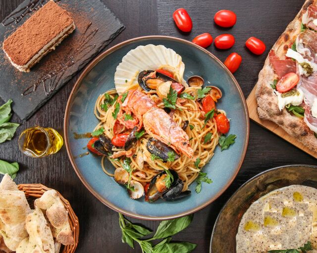 TAGLIATELLE GAMBERI E PISTACCHIO